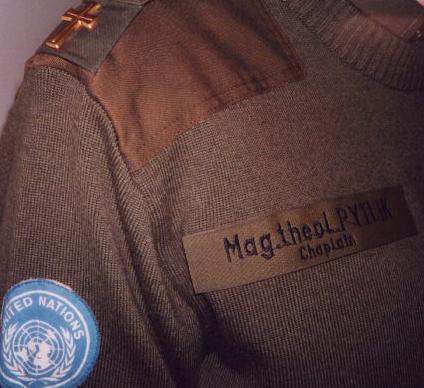 Die Einsatzuniform von Padre Alex (noch im "kühlen" Österreich.) |